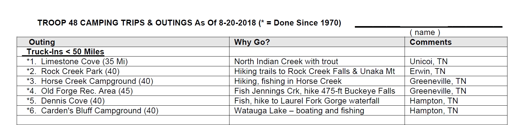 Please help do your part to lead the troop to exciting opportunities in 2021 and turn in a trip ballot on a Tuesday. Remember to pick 2 super trips and 10 others.